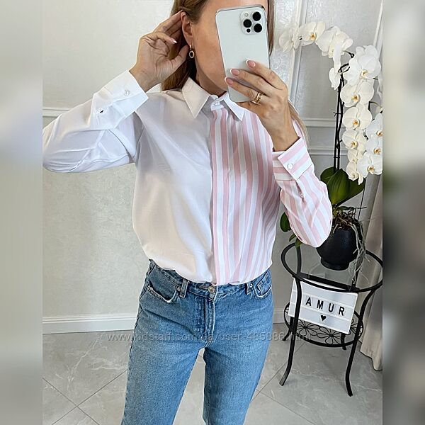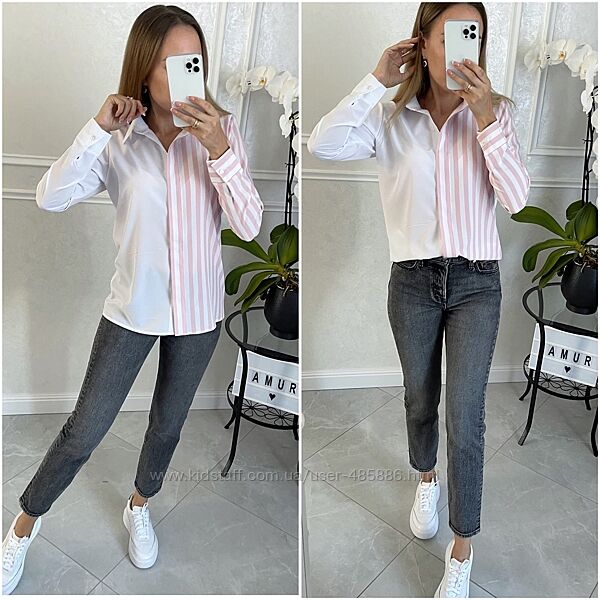 Трендовая рубашка колорблок, сочетание однотона и полоски сделает ваш образ нескучным и уникальным