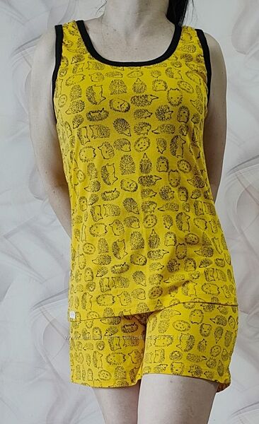 фото 6 Молодіжний жіночий комплект (піжамний, домашній) футболка з шортамиі. Края стильно оброблені - що надає моделькі неймовірної легкості та оригінальності. Тканина: інтерлок - рапорт - це полотно преміум якості. Інтерлок – це полотно, обидві сторони якого, однаково гладкі, не мають лицьового і виворітного боку. Це 100% бавовняна тканина, гладка і шовковиста.