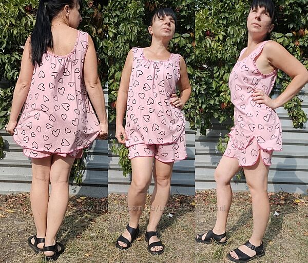 фото 3,4 Жіноча трикотажна піжама майка з шортами. Матеріал виробу кулір двойного прокрасу. модель іде розмір в розмір