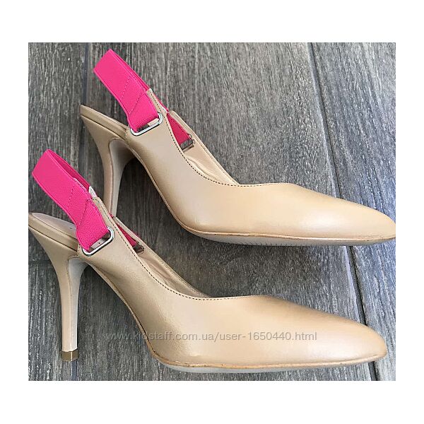 Кожаные бежевые туфли с малиновой резинкой Сarmen Marc Valvo FelixВерх - кожа. внутри кожа
