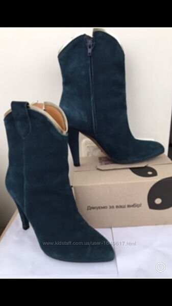 Подробное описание: Полусапожки р38 на высоком каблуке замш изумрудный оттенок Италия