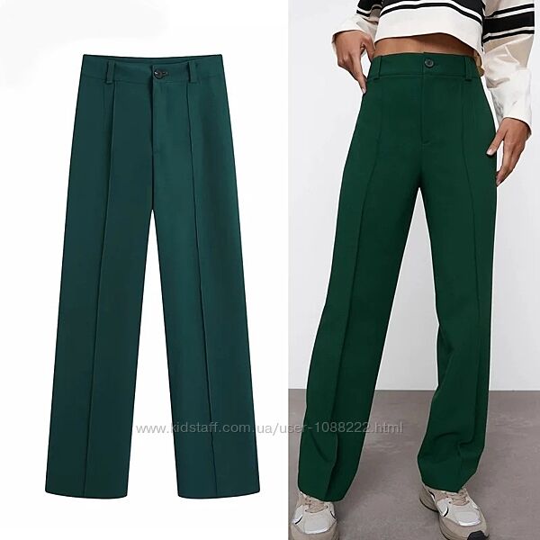 Женские брюки прямого покроя в стиле зара.Трендовая модель с высокой талией.