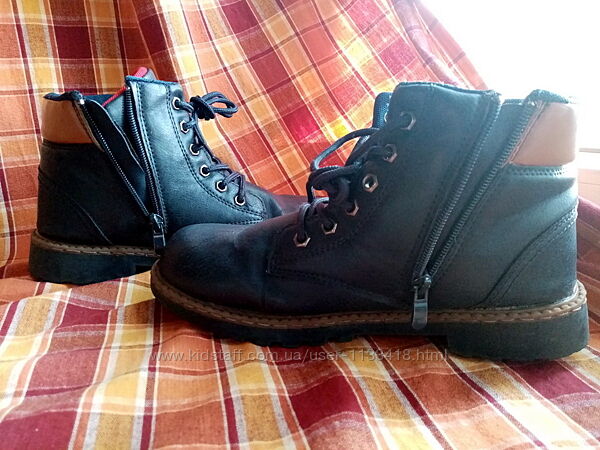 Прошиті, 38 р-р, устілка 24.5 см. На шнурках та блискавці, все працює. Темно-сині з коричневим, шкірзам.Стан гарний. Фото намагалась зняти максимально всебічними. Всередині утеплювач як на устілці.