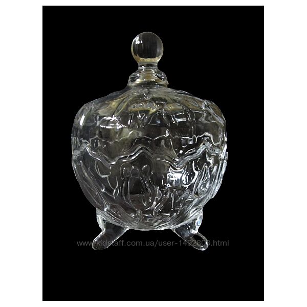 Салатник/конфетница "Тюльпан"с крышкой на ножках.Посуда добротная,глубокая. Три ножки обеспечивают максимальную устойчивость,края фигурные,удобная объемная ручка. Материал:толстое стекло с узорами тюльпанов Цвет: прозрачный высота салатника - 20 см диаметр внутрений - 13 см Подойдет для подачи салатов,соусов,маслин,как вазочка для конфет,печенья,варенья,джемов и проч. Состояние: нового,сервантное хранение