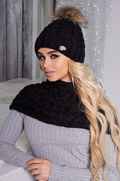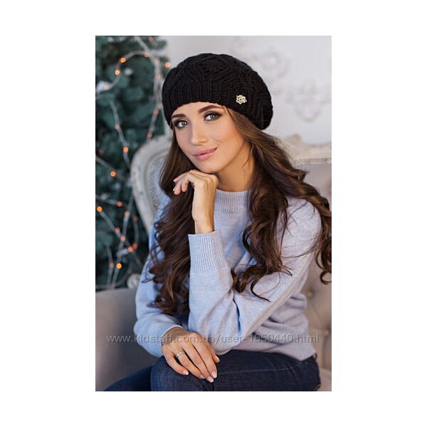 фото 1-2 Цена 490 грнЗимний женский берет без подкладки Ванесса черного цвета