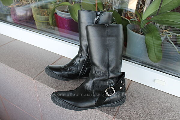 Шикарні шкіряні чобітки для дівчинки!!! Дуже стильно і багато виглядають на ніжці! Стан ідеальний ( як нові) - взути встиглибуквально кілька разів. 31 розмір, По внутрішній стєльці мають рівно