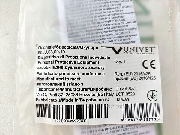 Очки защитные Univet 505U.03.00.19