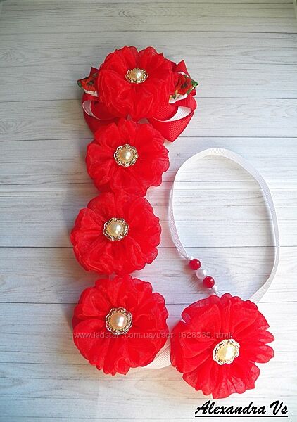 Подробное описание: Красивая лента в косу цветочками из органзы под вышиванку