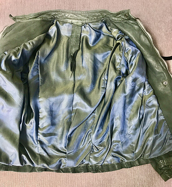 Куртка из мягкой плотной кожи Очень красивый цвет , который трудно назвать одним словом. Свинцово - бирюзовая или цвета зимней морской воды. Фото не передало в полной мере. Лучше не получается (