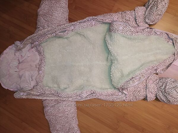 Комбинезон утепленный, с отстегивающимся натуральным мехом(овчина): два в одном. Меховая подстежка (Овчина) идет по всему комбинезону и врукавах. Подкладка в комбинезоне (весна-осень без меха) хлопок. Наполнитель