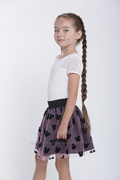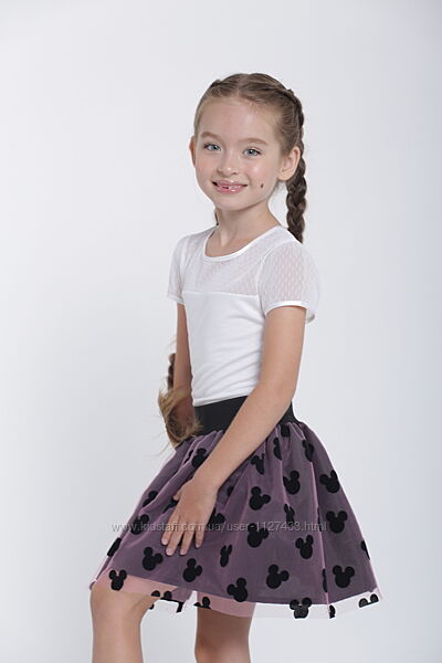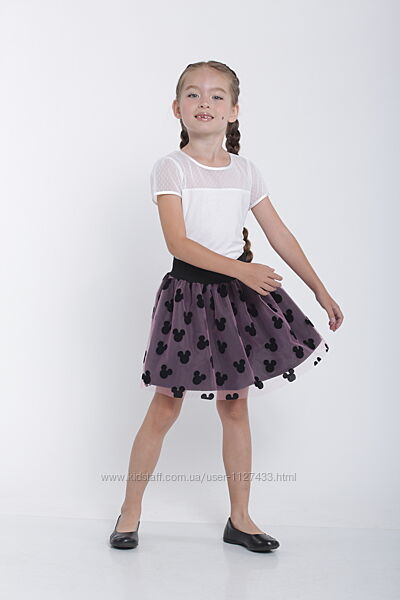 Модная и пышная двухслойная юбка, верхний слой- фатин в бархатные мишки. Юбка держит форму. Пояс-резинка.Цвет: черный с розовой сеткой