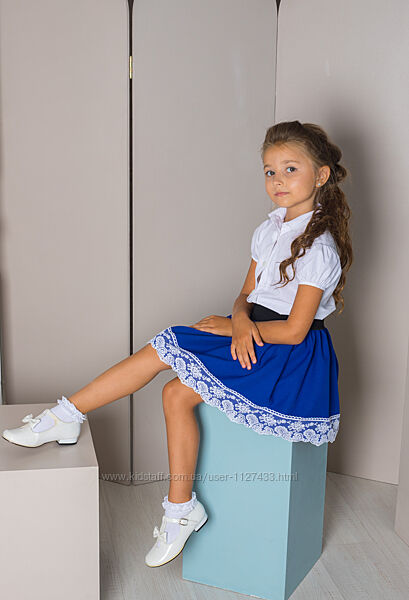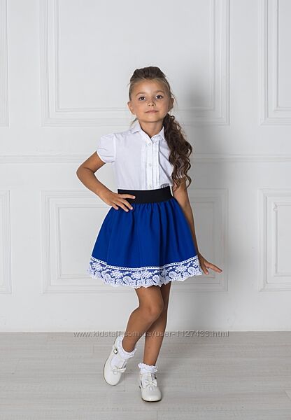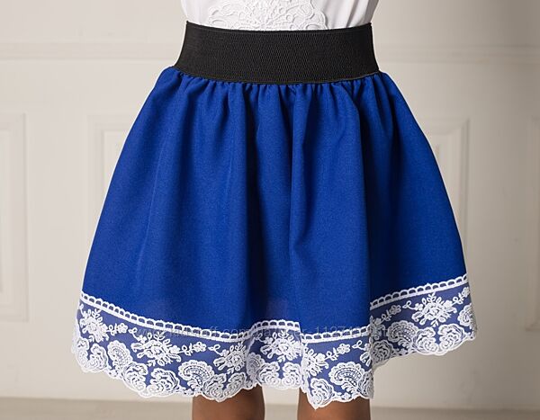 Юбка детская с красивым и качественным кружевом. Без молнии. Пояс-резинка.Цвет: электрик
