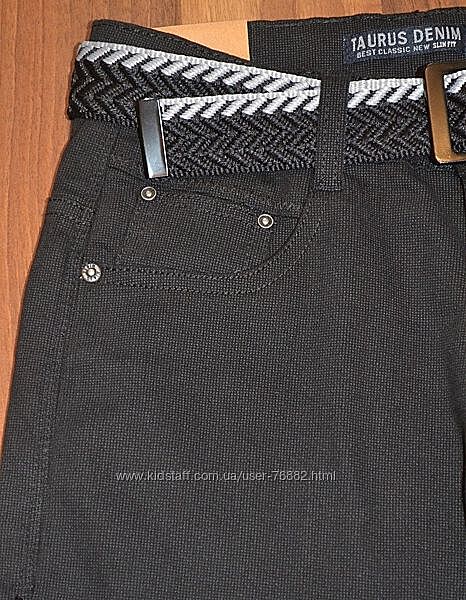 Стильные, модные, удобные КОТОНОВЫЕ БРЮКИ классического покроя для мальчиков подростков, размеры 134-152 см. Уникальная структура ткани с антистатическим эффектом. Спереди два кармана, сзади 2 накладных кармана, на поясе есть фиксатор-резинка. Ремень в подарок. Фирма TAURUS.Производство - Венгрия