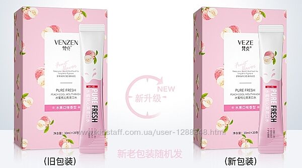 Подробное описание: VEZE Освежающий ополаскиватель для полости рта вкусом персика в саше 1шт