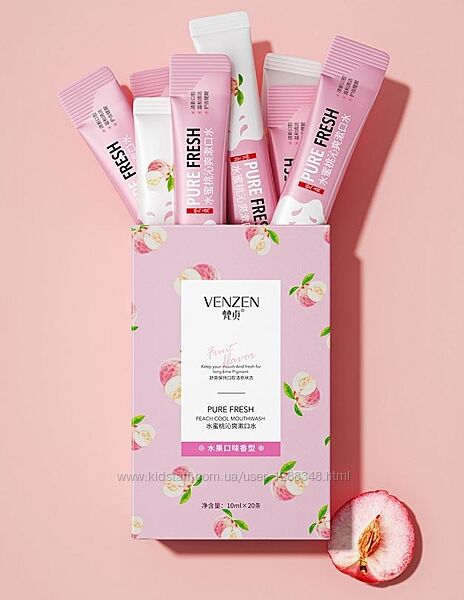 VEZE Освежающий ополаскиватель для полости рта со вкусом персика в сашеПочувствуйте невероятный прилив свежести и невероятную свежесть сочного персика!