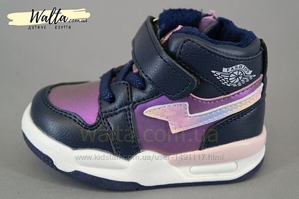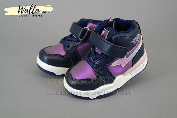 Стильные демисезонные ботинки для девочки фиолетовые с синим и розовые вставочки. В середине байка (утепление). Не тяжелые. Размеры для первых шагов.