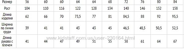 | Рост | 104 см, 110 см, 116 см, 122 см, 128 см, 134 см, 140 см, 146 см, 152 см, 158 см |
