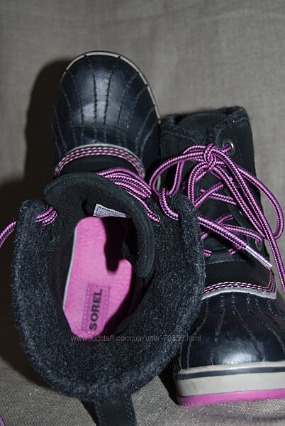 Чорні чоботи Sorel Waterproof, 35 розмір. Довжина устілки - 24 см. Виробник – В´єтнам.Sorel - одна з найпопулярніших ліній зимового взуття від канадського виробника.