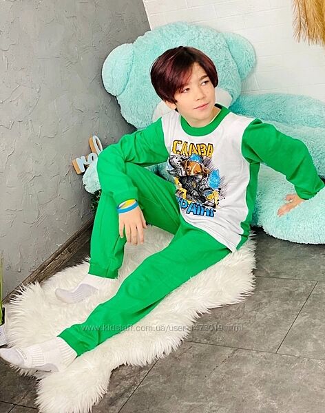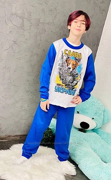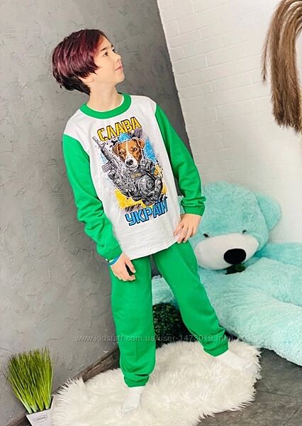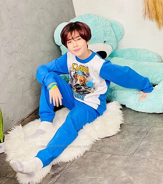 Вк Тепла красива дитяча піжама пошита з начесного полотна, яке повністю складається з бавовни. Полотно якісне, не береться катишками. На горловині, а також на рукавах є манжети . На штанах в поясі м´яка резиночка, по низу також манжети. У такій піжамі вашій дитині буде тепло, а також комфортно спати і проводити час вдома.З гордістю зроблено в Україні.