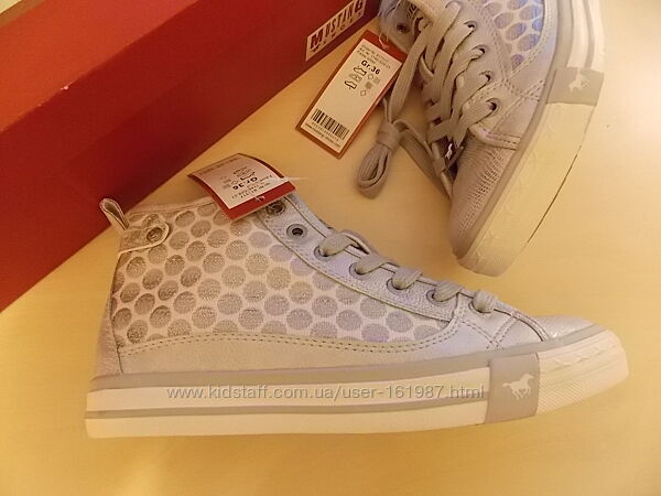 Фирменные Немецкие Кеды Mustang р-р36(22.5см)Оригинал-1300грн Новые в фирменной коробке! Отличный мягкий (не дубовый) кожзам со вставками плотной ткани типа гобелена. Очень стильно смотрятся! удобные на ножке! цвет серебристый металлик.