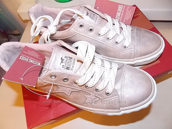 Фирменные Немецкие Кеды Mustang р-р36(22.5см)Оригинал-1300грн Новые в фирменной коробке! Отличный мягкий (не дубовый) кожзам. Очень стильно смотрятся! удобные на ножке! цвет персиково-бежево-перламутровый.
