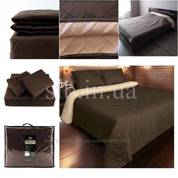 "Vintage" – двусторонний комплект-покрывало ТЕП®.Главное место в спальне обычно занимает кровать , и вид кровати сильно влияет на интерьер всей комнаты в целом . Правильно подобранное покрывало - ключевой элемент дизайна , который выгодно дополняет цветовое решение спальни , делая её более уютной и красивой . Покрывало на кровать - это завершающий штрих в дизайне вашей спальни .