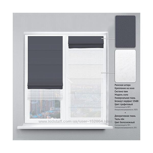Римская штора день ночь плотная ткань блэкаут, прозрачная ткань тюль лен белоснежный. Бесплатная доставка Новой Почтой по УкраинеРимские шторы день ночь шьются из разных категорий ткани (блэкаут 100% затемнение и тюли солнцезащита 10%, непросматриваемость 10%)