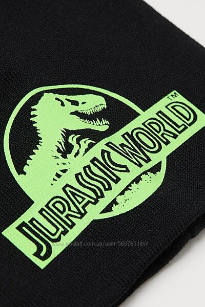 Тепла шапка H&M з принтом Jurassic World осінньо-зимова с динозавромРозміри: