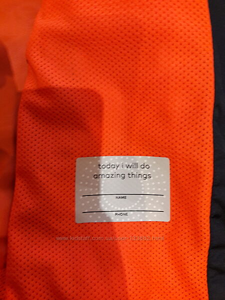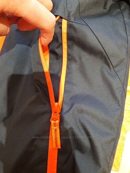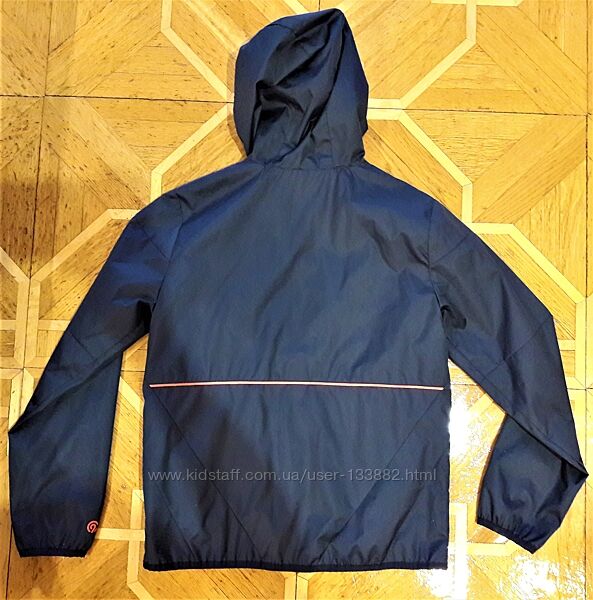 Состояние идеальное, как новая Цвет тёмно-синий и подкладка оранжевый, цвет насыщенный, качественно сделана, оригинальные карманы. Низ курточки и рукава манжетами резинкойВетро- и водонепроницаемая.
