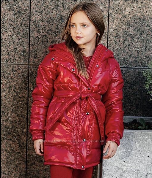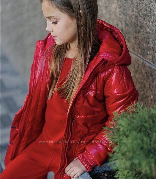 Чудове тепле пальто в стилі Moncler – з великим теплим капюшоном – для вітряних, снігових холодних чи просто сонячних днів сезону!Модний яскравий колір – червоний лаковий блиск! Якісний італійський матеріал.