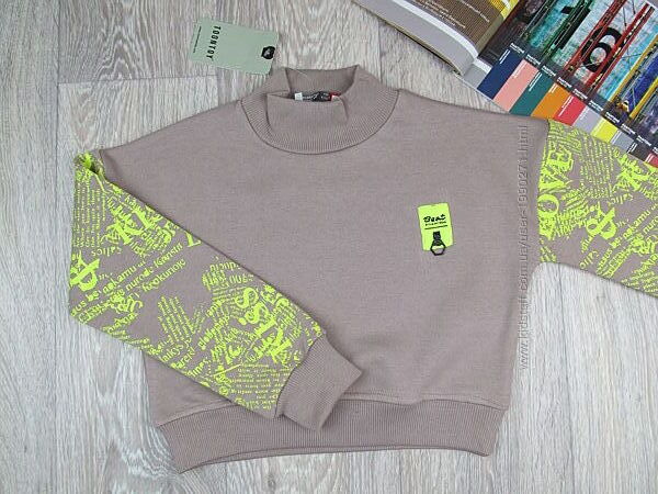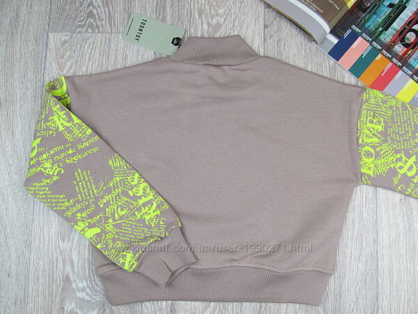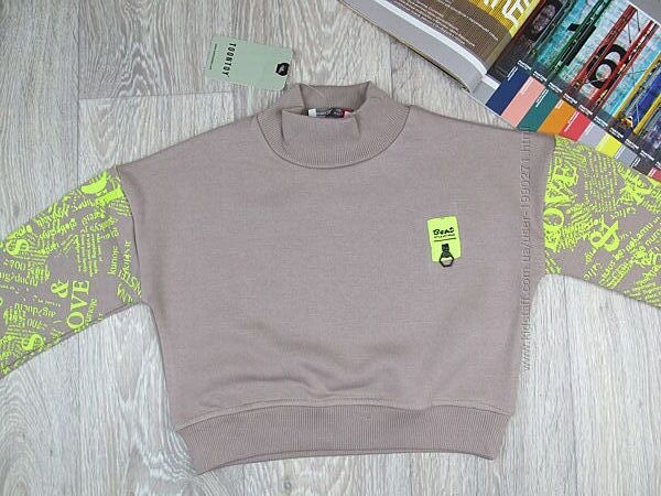 Свитшот укороченный с ярким неоновым принтом на рукавах.