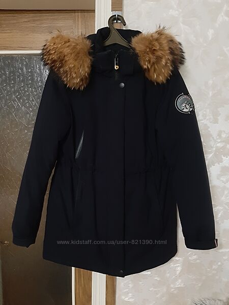 Эффектным аккордом становится пышная отделка из меха енота. Мех съемный.