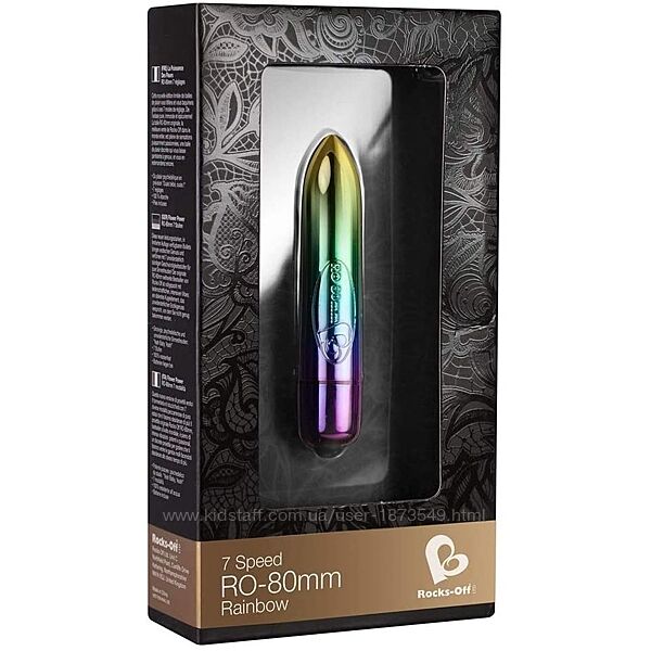 Предлагаем купить вибратор Rocks Off RO-80mm 7 Speed Rainbow - компактную модель из лимитированной серии. Несмотря на небольшие размеры (длина 80 мм, диаметр 16 мм), вибропуля обладает очень мощным моторчиком с 7 режимами вибрации.