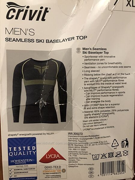 Функциональное термобелье/поддева от немецкого бренда профессиональной спортивной одежды Crivit (Германия, Lidl).