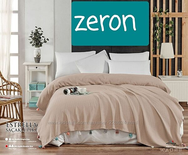 Подробное описание: Хлопковое покрывало пике ZERON с кисточками