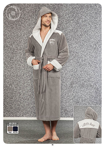 Подробное описание: Мужской Халат длинный с капюшоном Nusa 2810