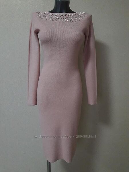 Красивое,облегающее,женственное,мягкое,25%кашемира,5%шерсти,платье в рубчик с жемчугомКрасивая,элегантная,стильная,деловая,женственная,сексуальная,полностью облегающая по фигуре модель платья идеальной длины по/за колено.Платье очень комфортное,уютное и теплое,выполнено из натуральной ткани в микро-рубчик,в составе которой хлопок,шерсть и кашемир.Ткань хорошо тянется на нужные параметры и красиво садится по фигуре полностью в обтяжку.Нежная горловина в виде небольшой "лодочки".Модель декорирована пробивными жемчужными бусинами и украшением в микро-камни в области декольте.Смотрится очень женственно, нарядно и эффектно!