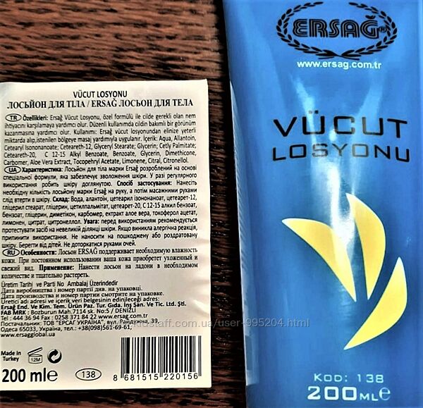 § Состав лосьона для тела от Ersag: