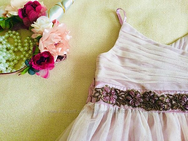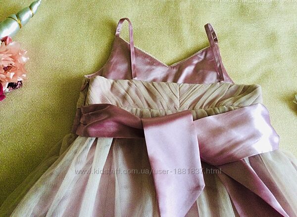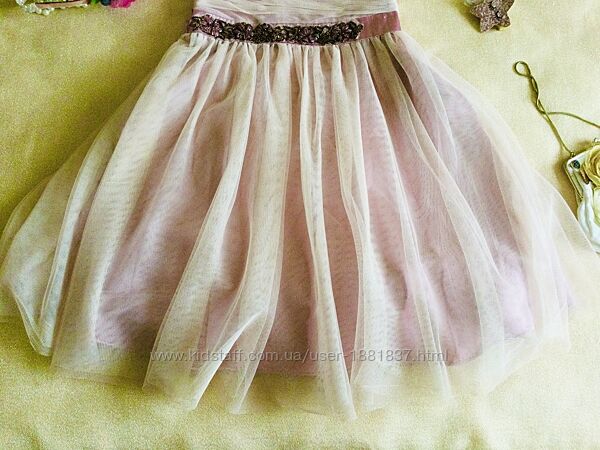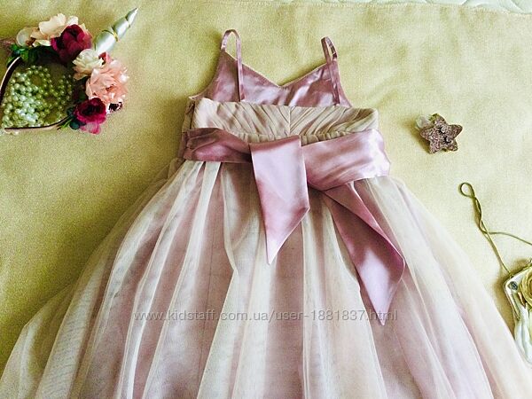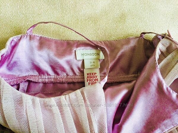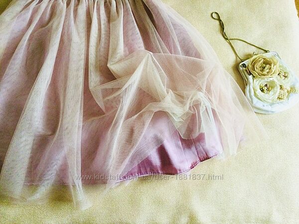 Monsoon. Дорогая коллекция. Лилово- Лавандовое платье- сарафан. Длинное в пол. Макси. Супер- пышное на подкладке и многослойных фатиновых подъюбниках. На талии шикарная вышивка камнями и бисером. Низ - многослойная супер- пышна юбка в пол. талия затягивается огромным атласный бантом в тон. Невероятно красивое платье Принцессы. Длина 66; подмышки 29Среди супер- пышного фатина есть мелкие несколько затяжек. Конечно , в носке нисколько не заметно , их видно только если взять в руки и рассматривать