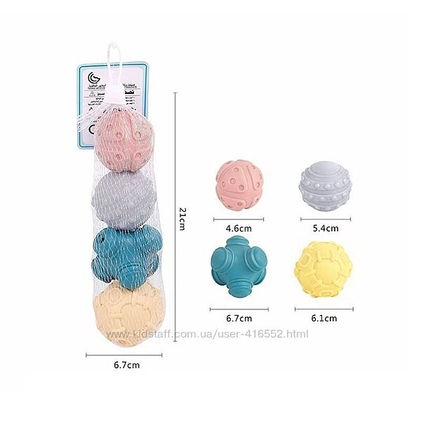⠀В наборе 6 мячиков разной текстуры, удобного размера приятных спокойных цветов.