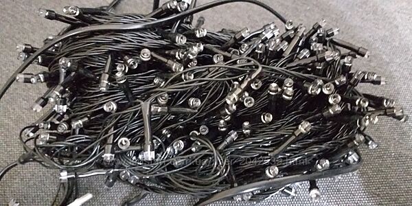 Гирлянда 300 лампочек. 18 метров. Цветная на чёрном проводе. 8 режимов
