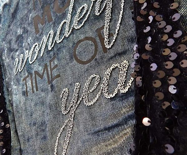 Женский велюровый костюм цвета синего джинса, заставит в себя влюбится модниц и любительниц ярких гламурных акцентов. Кроме приятного блеска велюра в костюме есть вставки из черного бархата паетками. Еще впереди красуется надпись « It’s the most wonderful time of the year» (это самое прекрасное время в году), причем слова «wonderful, year» (прекрасный год), выделены объемной аппликацией из крупных серебристых песчинок. И эти выделенные слова несут позитивный настрой обладательнице этого модного костюма. Молодые девушки оценят эффектный вид и удобство спортивной одежды такого типа.Костюм выглядит роскошно, благодаря переливу бархатистого материала. В таком костюме можно гулять, заниматься спортом или просто отдыхать. Эта модель состоит из двух предметов: штанов и свитшота. Верхняя часть комплекта имеет капюшон без шнурка-затяжки, длинный рукав заканчивается манжетом. Низ кофточки прямой с псевдоманжетом. Вставки из черного бархата с паетками расположены на рукавах свитшота, капюшоне и боковых вставках штанов. Штаны слегка заужены, снизу на манжете. Материал очень приятный велюр, состав ткани: 94% полиэстер, 6% лайкра.