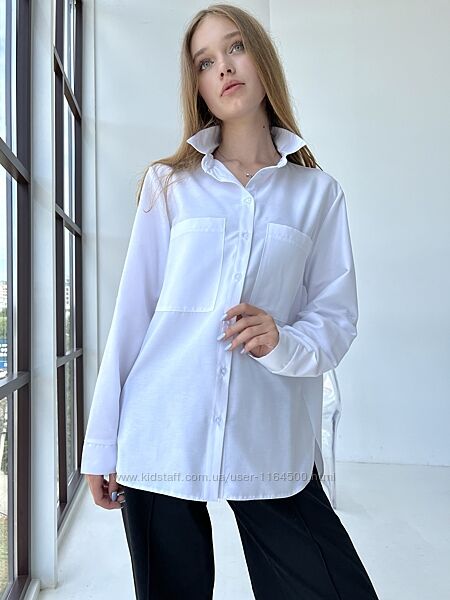 Біла сорочка з довгим рукавом для дівчинки. Застібається на гудзики. Спереду дві кишені. Тканина натуральна бавовна.Швидкий чат в Viber +380981524613