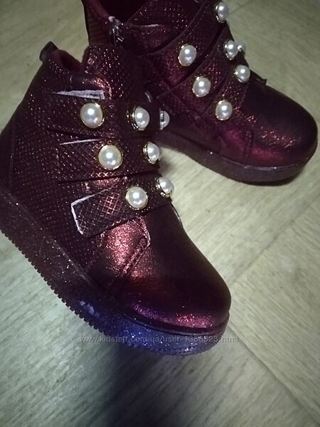 Подробное описание: Новинка Перламутровые деми ботиночки синие и бордо р 26 27 28 29 30 31
