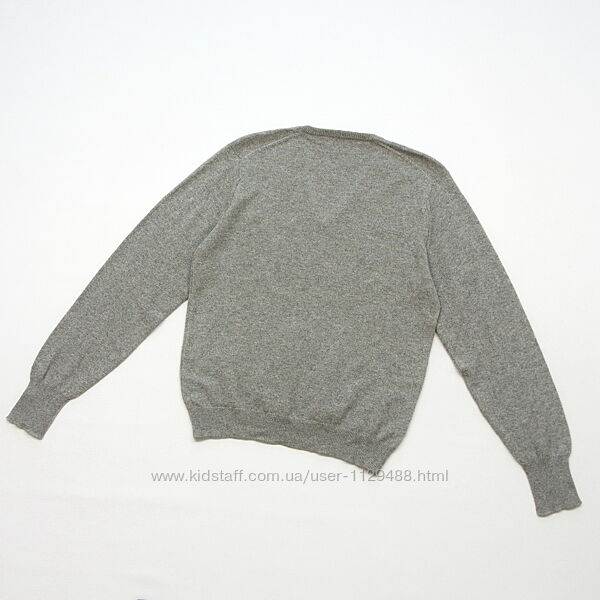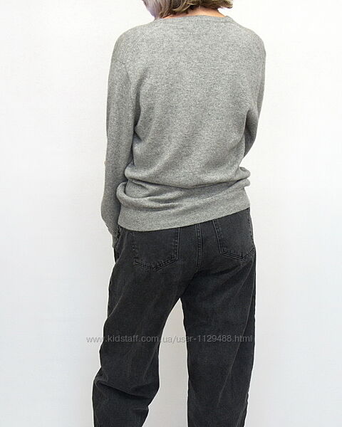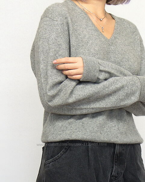 Очень мягкий, уютный, нежный, теплый, гладкой вязки, приятного благородного серого цвета, крой свободный, вырез уголком, на рукавах предусмотрены отвороты.