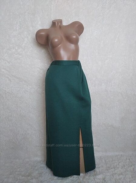 Юбка на подкладке, спереди сбоку разрез, застегивается на пуговицу и молнию