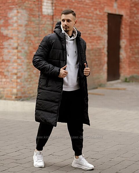 Подробное описание: Зимовий подовжений пуховик чорний