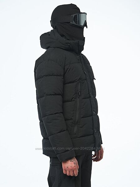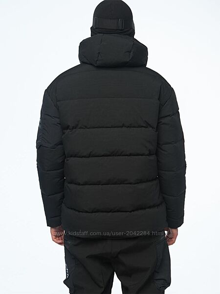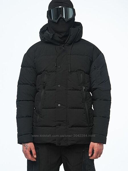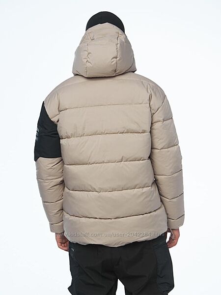 Пуховик середньої довжини з високим коміром і капюшоном для надійного захисту від холоду. Планка з прихованою блискавкою та кнопками спереду забезпечує зручність і захист від вітру. Прорізні кишені спереду, а на лівому рукаві — кишеня з фірмовим принтом чорного кольору. По низу виробу — шнур-резинка з фіксаторами для регулювання посадки. Пуховик розрахований на температуру до -20 градусів, гарантуючи тепло та комфорт навіть у суворих умовах.