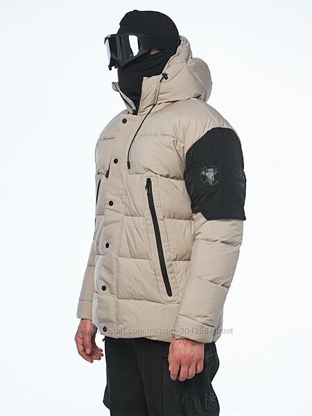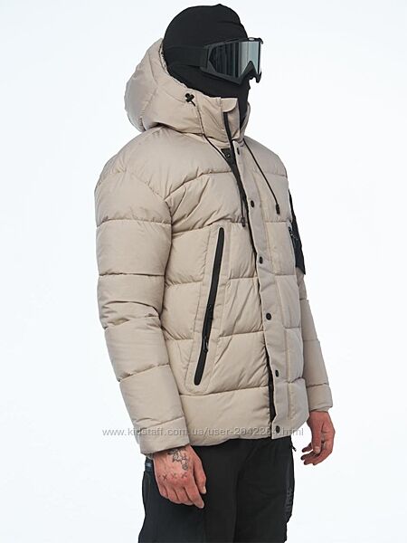 Подробное описание: Зимовий пуховик з плащової тканини Домару, бежевий/чорний
