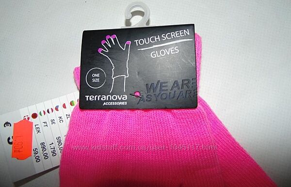 Перчатки terranova италия для сенсорных экранов touch screen glovesРазмер One size